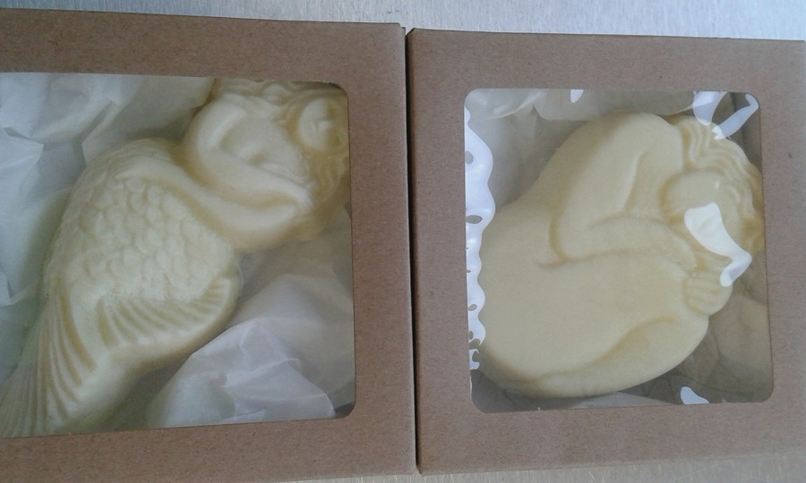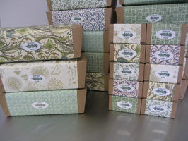 Erst dann packe ich jedes Stück Seife in einen Karton.